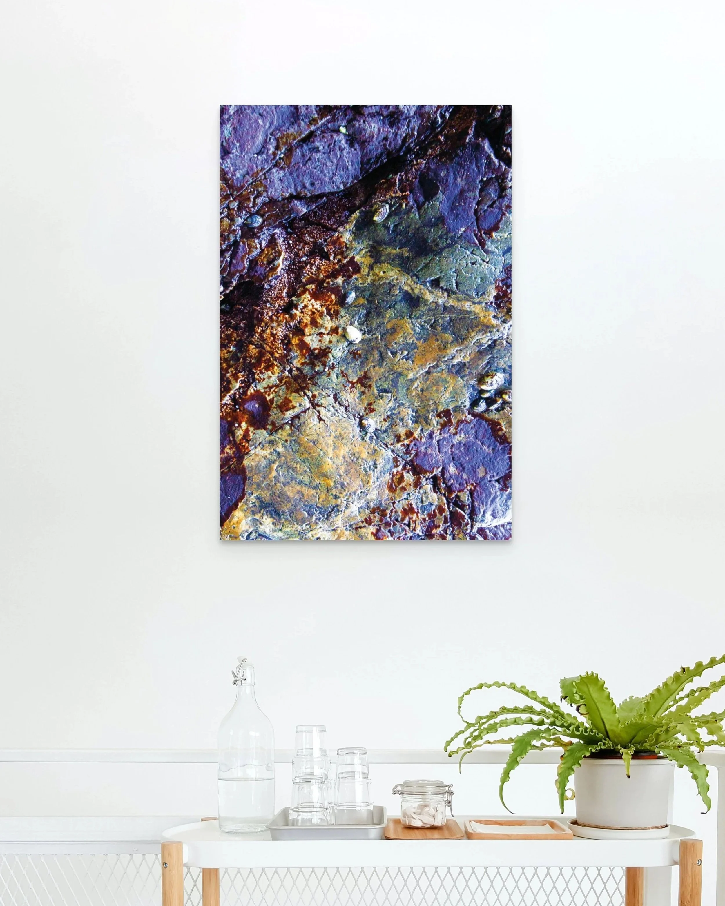The Cave Paintings are printed using archival inks on Chromaluxe Aluminum in a luminous gloss finish. The image floats 5/8" off the wall with an attached backer frame and includes hanging clips. No additional framing required. Hang in any direction.
